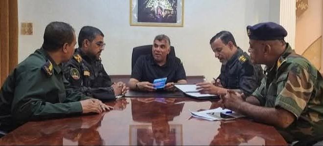 عقد المدير العام للأمن والشرطة بساحل حضرموت، العميد مطيع سعيد المنهالي، صباح اليوم بمكتبه بالإدارة العامة للأمن والشرطة، اجتماعًا أمنيًا طارئًا، بحضور قيادات الأجهزة الأمنية، لمناقشة التحديات الأمنية الراهنة، وتقييم مستوى الجاهزية والاستعداد لمواجهة أي تهديدات محتملة.