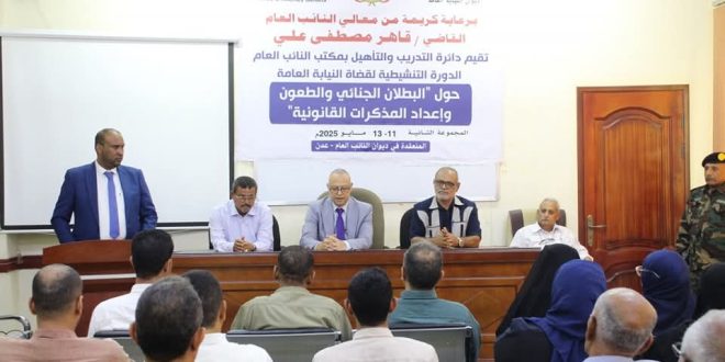 كما أعربت النيابة العامة عن شكرها وتقديرها للقاضي شائف الشيباني على جهوده المتميزة في إنجاح هذه الدورة، ولكل من أسهم في تنظيمها وتنفيذها، متمنية أن تكون هذه الورشة نقطة انطلاق جديدة نحو أداء قضائي أكثر تألقاً وريادة.