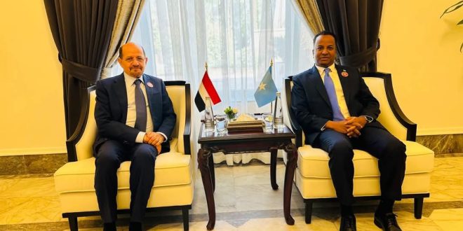 وخلال اللقاء، هنأ الوزير الزنداني نظيره الصومالي بمناسبة تعيينه..متمنياً له التوفيق في أداء مهامه..مؤكداً على متانة العلاقات التاريخية التي تربط البلدين الشقيقين، وحرص اليمن على تعزيز التعاون الثنائي في مختلف المجالات.