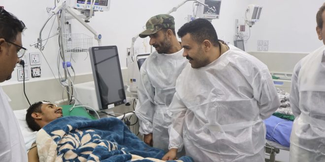 قام العميد /سياف المعكر، قائد اللواء السادس دعم وإسناد، بزيارة تفقدية لجرحى اللواء الذين يتلقون العلاج في المستشفى العسكري في العاصمة عدن،وذلك بحادثه سير خلال قيامهم باداء مهام عمل للواء السادس