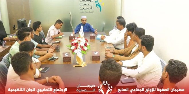 مؤسسة الصفوة تعقد اجتماعاً تحضيرياً للجان التنظيمية لمهرجان الصفوة للزواج الجماعي السابع