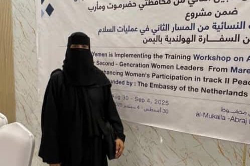 رئيسة دائرة المرأة بمؤتمر حضرموت الجامع تشارك في ورشة حول المناصرة وفن التفاوض