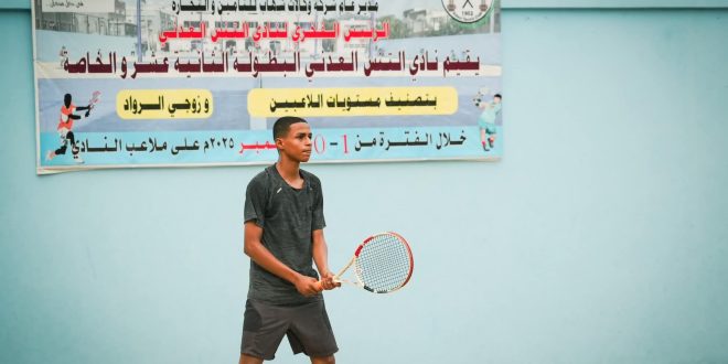 بحماس كبير ومنافسة قوية بين لاعبي التنس الارضي تتواصل على ملاعب نادي التنس العدني بكريتر بالعاصمة المؤقتة منافسات بطولة التنس الارضي بنسختها الثانية عشر التي نظمها نادي التنس العدني برعاية الاستاذ عقيل عمر شهاب مدير عام شركة وكالات شهاب للتجارة والتأمين (الرئيس الفخري للنادي) خلال الفترة من 1 حتى 10 سبتمبر 2025م وهي ضمن أنشطة النادي وخطته للعام 2025م وتعد هذه البطولة خاصة بتصنيف مستويات اللاعبين وكذلك زوجي الرواد، والتي تقام منافساتها على ملاعب النادي الثلاثة في فترة العصرية والمسائية تحت الاضواء الكاشفة بمشاركة أكثر من “30” لاعبا من مختلف الفئات العمرية يتنافسون في خمس فئات ( الممتاز، الزوجي المفتوح، الشباب، والناشئين، البراعم وكذلك رواد اللعبة).