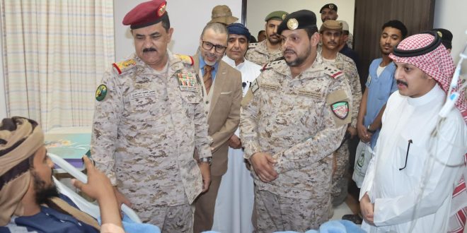 زار وزير الدفاع الفريق الركن دكتور محسن محمد الداعري ومعه قائد التحالف في عدن العميد الركن ماجد الحربي اليوم قائد اللواء الخامس حماية رئاسية العميد الركن عدنان رزيق الى المستشفى للاطمئنان على حالته الصحية بعد إصابته في الحادث الإرهابي الجبان الذي استهدف موكبه غرب تعز.