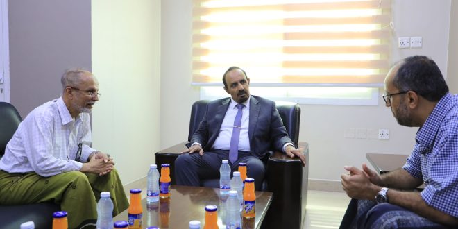 بحث محافظ حضرموت الأستاذ مبخوت مبارك بن ماضي، اليوم السبت في المكلا، مع رئيس غرفة تجارة وصناعة حضرموت الشيخ عمر عبدالرحمن باجرش، الأوضاع التموينية والاقتصادية العامة في المحافظة وسبل تعزيز الشراكة بين السلطة المحلية والقطاع الخاص، لدعم حركة الاستثمار والتجارة والصناعة.