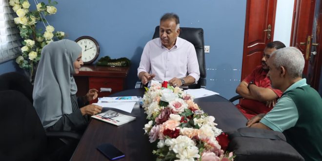 التقت الدكتورة جاكلين منصور البطاني، رئيس مركز رؤى للدراسات الاستراتيجية والاستشارات والتدريب، اليوم الثلاثاء، بمدير عام مديرية المعلا الأستاذ عبدالرحيم الجاوي، في إطار جهود الحشد والمناصرة لمشروع “أنقذوا السلاحف البحرية في خليج عدن” التي ينفذها المركز بتمويل من مرفق البيئة العالمي وبرنامج المنح الصغيرة.