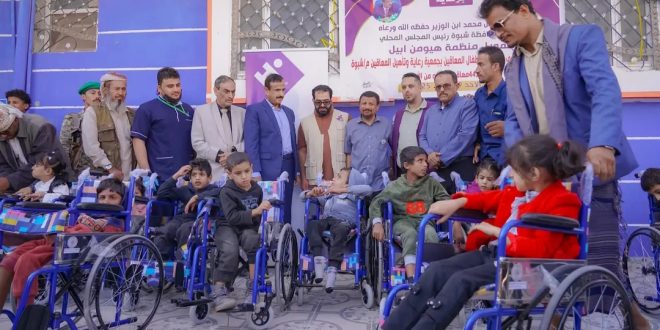 المحافظ بن الوزير يدشن توزيع 442 كرسيًا متحركًا للطلاب من ذوي الإعاقة.