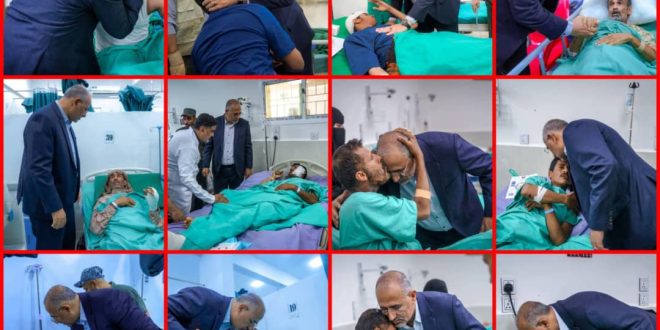 واطئمن الرئيس الزُبيدي خلال الزيارة على أحوال الجرحى وأوضاعهم الصحية، ومستوى الرعاية الطبية المقدمة لهم، ومشددًا على ضرورة إيلائهم العناية الكاملة وتوفير كافة الاحتياجات الطبية اللازمة لضمان تعافيهم.
