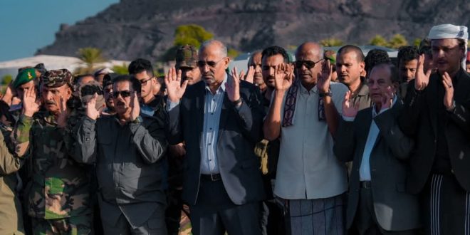 أدّى القائد عيدروس قاسم الزُبيدي، رئيس المجلس الانتقالي الجنوبي، القائد الأعلى للقوات المسلحة الجنوبية، عصر اليوم، صلاة الجنازة على شهداء عملية “المستقبل الواعد” من أبطال القوات المسلحة الجنوبية، الذين ارتقوا وهم يؤدون واجبهم الوطني في محافظة حضرموت.وشُيِّعت جثامين الشهداء في موكب جنائزي مهيب، تقدّمه االزُبيدي وعدد من أعضاء هيئة رئاسة المجلس الانتقالي الجنوبي، والوزراء ونواب الوزراء، وعدد من القيادات العسكرية والأمنية، إلى جانب عدد من المشايخ والوجهاء والشخصيات الاجتماعية، وأهالي وذوي الشهداء، وجموع غفيرة من المواطنين.وأُدّيت الصلاة على جثامين الشهداء، ثم أُقيمت مراسم تشييع رسمية شملت حرس الشرف وعزف الموسيقى العسكرية، قبل أن يتجه موكب التشييع لمواراة جثامينهم الطاهرة الثرى، وسط مشاعر فخر واعتزاز بتضحياتهم في سبيل الوطن والدفاع عن أمنه واستقراره.