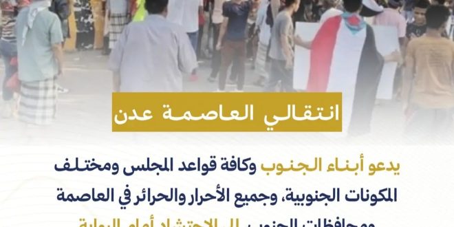 تدعوكم الهيئة التنفيذية للقيادة المحلية للمجلس الانتقالي الجنوبي بالعاصمة عدن، وكافة قواعدها الشعبية، للاحتشاد والمشاركة الفاعلة في: