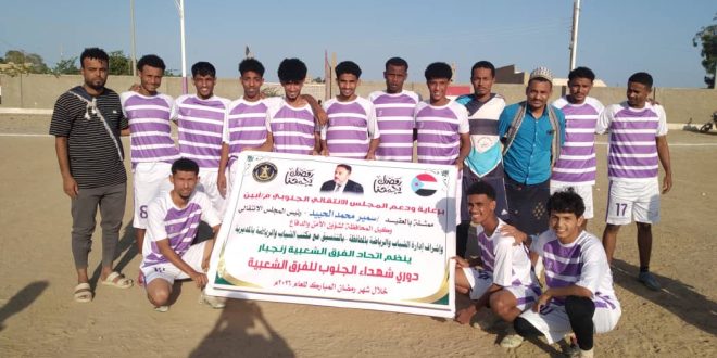 من فرق المجموعة الأولى في اللقاء الذي جرى بين الفريقين عصر اليوم الأحد على ملعب الفقيد نصيب عوض نصيب بزنجبار في بطولة دوري شهداء الجنوب الرمضاني للفرق الشعبية لكرة القدم برعاية ودعم المجلس الانتقالي الجنوبي بالمحافظة وإدارة الشباب والرياضة بالمحافظة وبالتنسيق مع مكتب الشباب والرياضة مديرية زنجبار والذي ينظمها الاتحاد الفرق الشعبية بزنجبار.