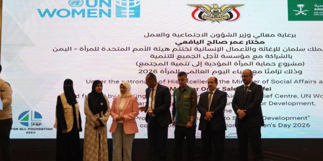 بالتزامن مع اليوم العالمي للمرأة الذي يصادف الثامن من مارس من كل عام، اختتمت هيئة الأمم المتحدة للمرأة – اليمن، اليوم، في مدينة عدن، أنشطة مشروع “حماية المرأة المؤدية إلى تنمية المجتمع” الذي نُفِّذ بدعم من مركز الملك سلمان للإغاثة والأعمال الإنسانية، وبالشراكة مع مؤسسة من أجل الجميع للتنمية.