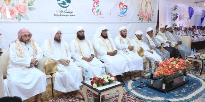 كما عبر مدير مكتب الشؤون الاجتماعية والعمل بالمديرية الأستاذ محمد علي عيديد عن دعم السلطة المحلية لمثل هذه المبادرات المجتمعية النوعية وألقى الشيخ د. عبدالله بن محمد اليزيدي كلمة العلماء وجه خلالها جملة من النصائح والإرشادات للعرسان فيما نقل رئيس مؤسسة وقف للأعمال الخيرية و الإنسانية الشيخ عادل خميس بن سرور تهاني راعي المشروع