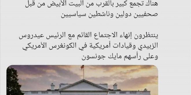 وقال بن راشد، في منشور له على منصة “إكس”، إنه انطلق من واشنطن إلى محيط البيت الأبيض، مشيراً إلى أن الأبواب لا تزال مغلقة حتى اللحظة، وسط ترقب لما ستسفر عنه اللقاءات الجارية.وأضاف أن المنطقة تشهد تجمعاً لعدد من الصحفيين الدوليين والناشطين السياسيين، بانتظار انتهاء الاجتماع القائم، والذي يضم قيادات أمريكية في الكونغرس الأمريكي، من بينهم النائب مايك جونسون.