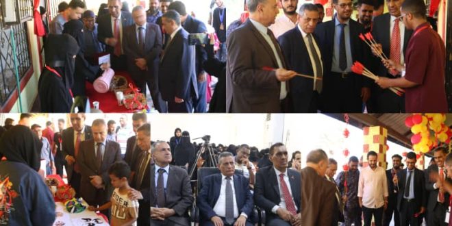 افتتح اليوم في العاصمة عدن، معالي وزير التعليم العالي ا.د أمين نعمان القدسي، بمعية رئيس جامعة عدن ا.د الخضر ناصر لصور، وعميد كلية اللغات والترجمة ا.د جمال الجعدني، فعالية المعرض “جسر الثقافة الصينية”، وذلك بمناسبة يوم اللغة الصينية، والتي نظمتها كلية اللغات والترجمة بجامعة عدن .