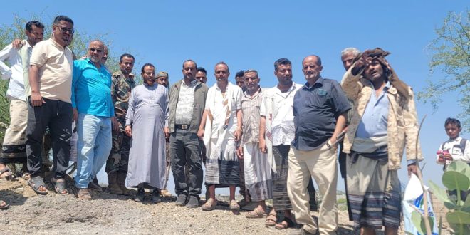 المدير العام بكر الشاعري يتفقد مساحة الأرضية المخصصة لبناء وحدة صحية لمنطقة سليم بمديرية قعطبة